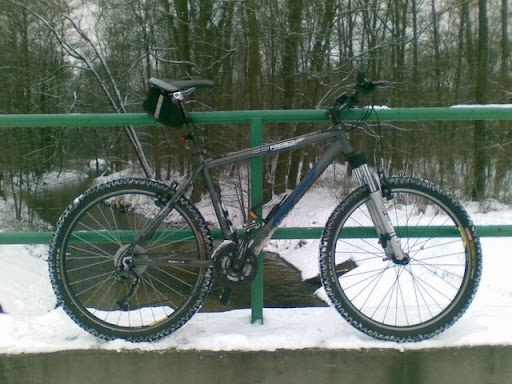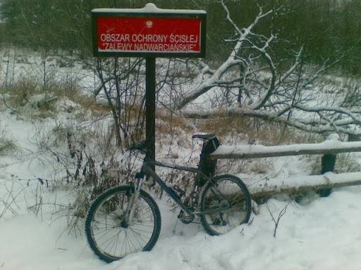 Pojechałem przed Dębinę i Luboń szlakiem nadwarciańskim do Puszczykowa i tą samą trasą wróciłem. Droga niby dobrze znana ale w zimowej scenerii czasami czułem się jakbym jechał tam po raz pierwszy. Raz nawet źle skręciłem. Niestety licznik odmówił współpracy już po 2 kilometrach ale wiem, że do rozjazdu na wysokości stacji w Puszczykowie mam z domu równe 16,5 km. Średnia na pewno sporo poniżej 20 km/h, w śniegu albo się jedzie ciężko gdy jest on kopny albo niebezpiecznie gdy jest ubity. A najgorzej jest tam gdzie warstwa puchu przykryła zmarzniętą koleinę. Jeżeli chodzi o gleby, to nie było źle - skończyło się na 2 i chyba z 10 podparciach kiedy jednak zdążyłem wypiąć nogę.
